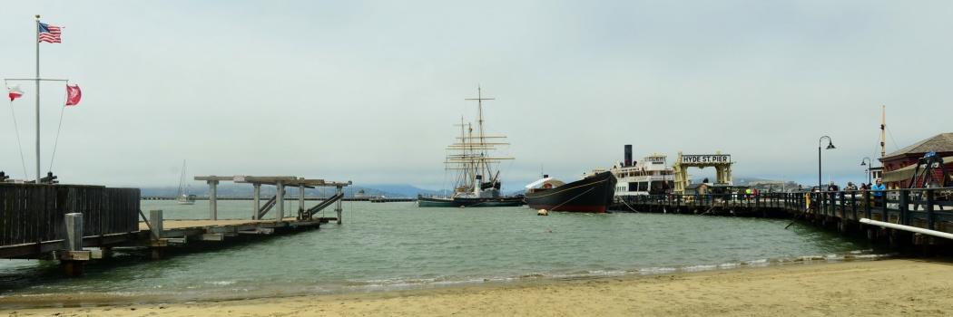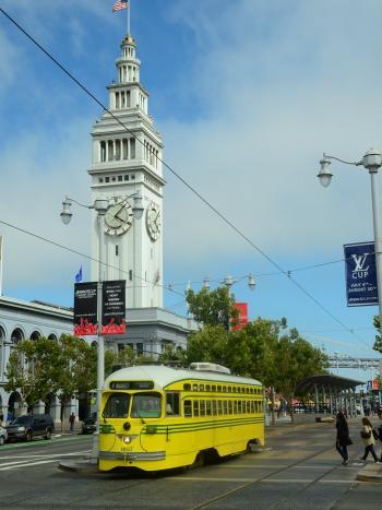 Then, we headed out properly. We got the tram to the Ferry building and switched onto the F-line around Fisherman’s Wharf, getting off near the bike rental place we had seen before. Stopped to use the restroom on the way, only to end up waiting for 10 minutes as they had closed them for ‘cleaning’ and they were the only local loos! Some American bloke and his kid also tried pushing in, but an loquacious American woman started on him - quite a bit of excitement so early in the day!
