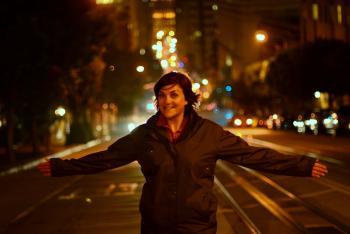 It had dropped colder, so we stopped in the Alcatraz cafe for a cup of tea. We waited till about six - our boarding time - and were surprised to see a lot of people already queueing. Seemed odd, but showed our tickets and joined the line. Had an obligatory photo taken, in front of an image of Alcatraz, which you could buy later for ‘only’ $22. Got aboard the boat and set sail. The fog had crept in, so the coastline looked quite eerie.