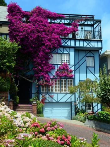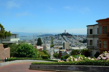 We headed out from Macy’s to start our walking tour. First, it took us through Chinatown. It was really colourful; there were people playing traditional Chinese music and at one point, a van pulled up full of watermelons, which was quickly surrounded by lots of people. Next, we headed up to Lombard Street (the most crooked street in San Francisco). I think it’s because the incline is much too steep to be straight, so it wiggles all over the place. It looked really colourful, with big hydrangea plants planted all the way up. There were lots of people taking photos - including the people in the cars, driving down! There was also an amazingly vivid pink bougainvillea growing up a striking blue house, which was stunning.