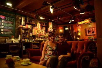 The film was an introduction to the history of the company; neither of us realised there were four brothers originally, starting the company so that was a fun fact. They also shared loads of clips from films and shows that have been made, to tickle the taste buds, as it were! We then went off in smaller groups to do the golf-buggy-tour bit. Our tour guide was called Noah, and you had to love his enthusiasm! He was very good at his job. He drove us (a group of nine) around various sets and streets that are permanent fixtures - and also many ‘everyday’ parts of the site that are always left neutral to be dressed as required. There were several highlights: we went into a museum of artefacts from different shows/films and they had an array of Harry Potter stuff, including the Marauders Map, one of Arogog’s descendants, Hermione’s frozen body from ‘The Chamber of Secrets’, and a little Dobby. Also, they had costumes and props from ‘Hart of Dixie’, ‘The Big Bang Theory’, the new ‘Batman’, ‘Chuck’ and ‘The Hangover’ films to name but a few. We also went to see some cars being stored; the Ford Anglia from Harry Potter, several Batmobiles, and Clint Eastwood’s car from Gran Torino. At another point, we went to see the Central Perk set from ‘Friends’ - the original - and we sat on the sofa for a photo. The two final highlights of the day were seeing Leonard from ‘The Big Bang Theory’ and the filming of ‘Hart of Dixie’! So exciting! At least, we’re fairly certain it was Leonard, and, as for the filming, Noah told is it was filming for ‘The Mentalist’, but all the props were from the set of ‘Hart of Dixie’, and we are fans, so we know!