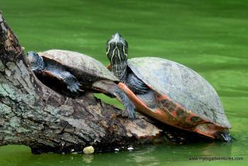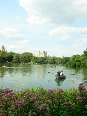 Ben did the rowing, so I was the official photographer and ‘crash averter’. We were just rowing along, when Ben spotted what he thought was a turtle on a tree root, sticking out of the water. We went closer and it turned out to actually be a turtle! A real turtle! In the wild! Awesome. I took lots of photos. We then saw a few more turtles as we made our way around the lake. We also got a bit wet – there was a mini-island which had a water spray on it, and it got us on our way round! As we rowed, we saw more turtles and we explored the lake thoroughly, even nearly getting grounded twice! We also managed to see a few key sites from the boat – the Bethesda Fountain, one of the biggest fountains in the Park. We also stopped by the bank to listen to a busker, who was entertaining the crowd on the grass. He did quite a range of songs and even got another boat actively involved as they did the drum solo on their boat. There was also a wedding taking place so the busker performed an impromptu first dance for them, which was really sweet.