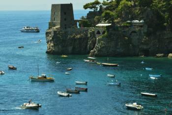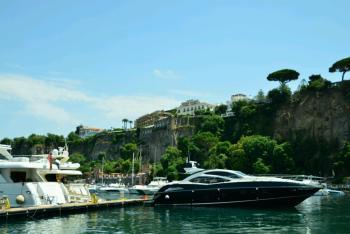 Eventually moving on we decided to grab some lunch stopping at Hotel Flora. It was very tranquil despite being just off a well trodden passage. There were only a few other people there that seemed to be residents if the hotel. We had a very nice lunch sitting on the terrace overlooking the sea. Do look out for it if you visit! After a long lunch we continued to wander in and out of the shops and meander around the streets until about 3.30 when beginning to feel tired we headed back down on the fenicular train and across the dock to get the boat back to Sorrento. The boat back was much quieter again at the top this time at the back right to get the best views on the way back. Arriving back in Sorrento we headed back to the room to cool down.