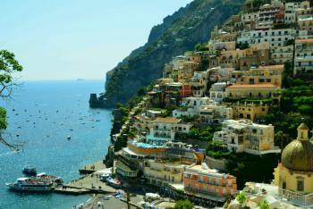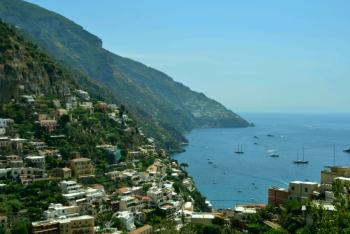 It took about an hour of winding mountain passes so an hour was about enough! But as promised, the seats had offered the best views - of panoramic seascapes and the small coastal townships. Arriving at the top of Positano, we took a few photos of the view, then heading down through the maze of passages and stairways that were heading for the beach. As we went, we passed by many little shops, particularly selling ceramics, and we bought some little pottery chillies for our kitchen.