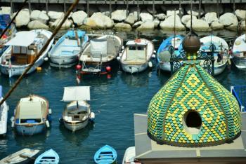 We decided to spend the day in Sorrento today, planning day trips for Capriand Positano for the other days that we're here. So we started with a meander into town, making our way through some of the bustling side streets, taking care not to get mown down by the plethora of mopeds zipping about. Just like in Rome, every crossing is like taking your life into your hands, as you close your eyes, cross your fingers and step out (OK, maybe not eyes closed). At the other end of the shopping area, we headed down a narrow lane leading to, what we thought was, the coastline. And it was! We were looking down onto Marina Grande, and could see across the Bay of Naples to Mount Vesuvius. From there we wandered along, stopping at viewpoints on the way. We arrived at Marina Piccola and could see down to the man made bays in the marina. The water was crystal clear and there were lots of beach huts lining the different sections. Ben had a cheeky icecream while we cooled off under a tree. There is a lift down but we decided to walk down, saving the lift for the more arduous journey back up. From there, we headed to the Porto, to find out about tickets for our planned day trips. Got the necessary info and I had a sandwich.