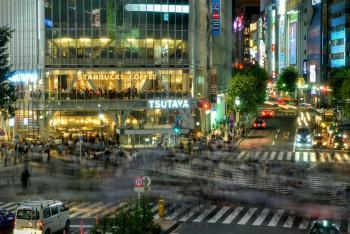 As you enter the site of the shrine you pass under a huge wooden gate that towers above you. It's a pleasant walk round to the shrine but when we got there we were a little disappointed to find the gate house which is quite a focal point was under repair so totally clad in scaffolding. Had a wander nonetheless and watched as some prayers were under way with occasional gongs ringing out. On the way back out we stopped for a walk around d the gardens we which had a small entrance fee. They were very tranquil and whilst there encountered some very friendly birds that were landing on people passing through. We had some dinner in Shibuya before heading back to the hotel for a rest. Headed back out again later back to the busy junction for a few night shots.