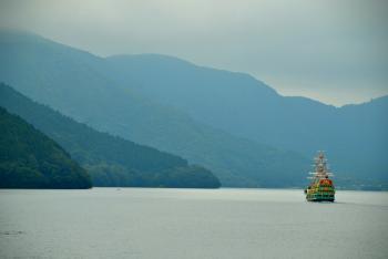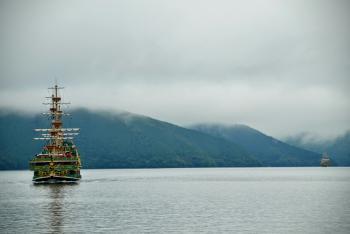 Well we've had a busy few days in Hakone so far. We're staying at the Hakone hotel which is in a great location right on the edge of lake Ashi looking out towards the mountains. On a clear day the hotel has a prime view of Mt Fuji but so far it's been too cloudy. The tops of the mountains have been covered in fog meaning no Fuji, nevertheless there's been plenty to do and we've been having a great time. We bought the Hakone free pass whilst in Tokyo which gives is unlimited free use of boats busses and cable cars in addition to free entry to a number of museums and gardens. Because we're on the edge of the lake, we're only a very short walk from where you can catch the sightseeing ships which take you across the lake to Togendai port. The ships that you catch are modelled on famous 16th century ships like HMS Victory and the Vasa and you're treated to fantastic views of the surrounding mountains on your journey across.