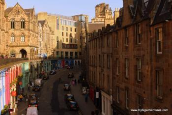 Today with the sun shining outside, we headed underground. Not the best timing, but nevermind. The Mary King's Close experience takes you underground to the site of one of the original close's of Edinburgh, some of the original buildings still exist now with valuted ceilings to support the Royal Exchange now built above. The tour takes about an hour with a guide taking you though the history of the area and walking you through a number of rooms and buildings including the narrow street that originally ran all the way down to the loch - now filled in and home of the Waverley train station. We spent the afternoon exploring Edinburgh a bit more including a walk around the Grassmarket and a walk up to the Scott monument - which had sadly closed just before we got there.