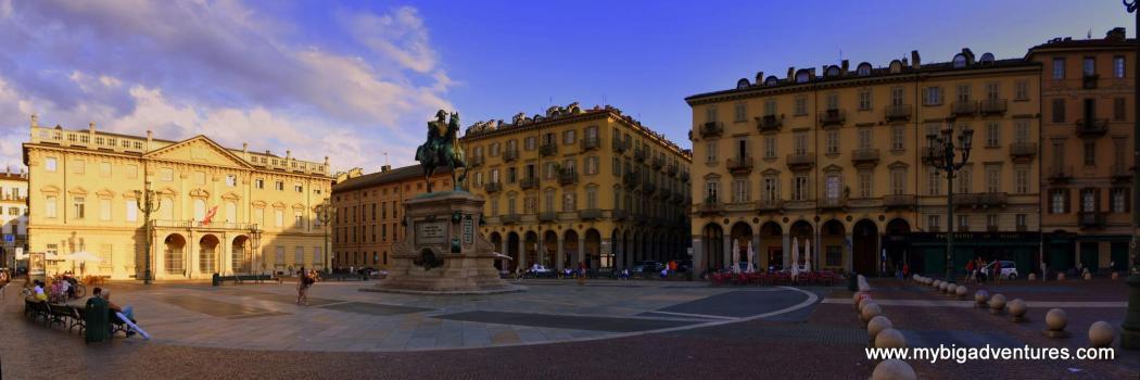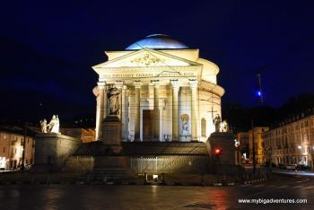 We've been taking it fairly easy, but on our first day, we did wander around much of the town, looking at the key sights and finding our bearings. We started at the Piazza Castello, where the Palazzo Reale di Torino is situated and ambled around from there, looking at the old town, the main market place, a number of impressive churches, the 'Mole' (the emblem of Turin) and ending near the river Po. We went back to the hotel for a rest before heading to another recommended restaurant, Pastificio Defilipis, where we enjoyed homemade pasta dishes - Dani had a black ink pasta with swordfish and aubegine, while I had pesto pasta with beans and potatoes, followed by peaches with Amaretto and chocolate and tarte tartin. Very tasty. Feeling full, we headed to the Piazza San Carlo for a walk and to take some nighttime photos. It began thundering en route and, shortly after, we found ourselves in the middle of a full thunderstorm. The rain quickly followed and we dived for cover. Fortunately most of the route back to the hotel is under large covered walkways so we managed to keep fairly dry but there were plenty of bangs and flashes of lightning to keep us entertained on the walk.