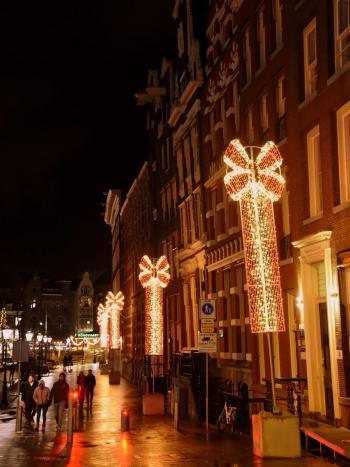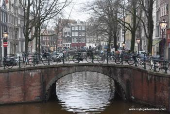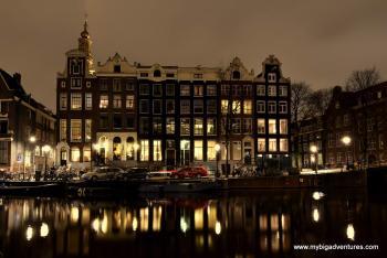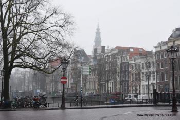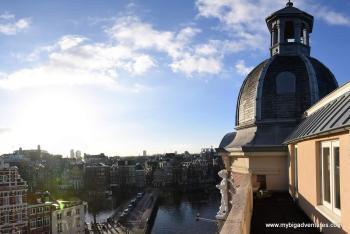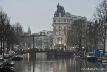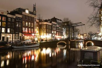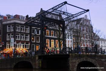 We broke up early this year finishing on the 15th so had already decided we would go away for a few days before the usual Christmas festivities. We had been wanting to go back to Amsterdam for a while and so settled pretty quickly on the destination. We're stopping in a nice hotel with a canal view. It's apparently the oldest hotel in Amsterdam and is where Rembrandt painted 'The Night Watch'. Our room is up on the fifth floor with a balcony out to look over the canal and bridge below. On the first night here we thought the bridge outside looked familiar. It turns out it's in our Big Europe Adventure - Amsterdam album from 10 years ago - we must have stood right outside our hotel to take the picture!
