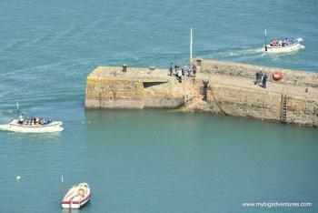 The climb up follows a winding path of uneven cobbles and stepped rock sections, and was no easy feat. It took a little while, but we all got there in the end. There are some terrific views from the top of the boats ferrying people below and the surrounding coast. We had a bit of a sit in the sunshine on the rocks just outside the castle entrance and Dani managed to spot a seal in the sea below! After a bit of a rest, we headed into the castle to wander around the historic rooms, it was all very insteresting, and although there was a steady stream of people, it wasn't exactly busy.