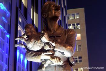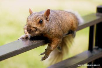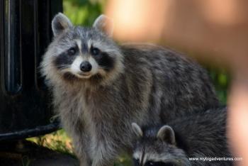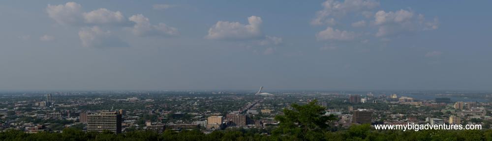 At the end of Deluth avenue we reached La Fontain Park. We had a walk around the park stopping to take some photos of the dragonflies that were darting about around the edge of the lake. We sat for a while on some benches and then after a bit more of a wander, we decided to head for Mont Royal. We walked along Rue Rachel, stopping off to buy some more water before heading into the park. It turned out to be a bit of a climb, more than we had anticipated given we were already feeling tired but we percevered following signs for a suspended cafe. The cafe wasn't quite what we antipated, but neverthless it was at a nice viewing point down acorss Montreal, and we were able to get some cold lemonade to drink. Whilst we were sitting we noticed a bit of a fuss just down from the cafe, and after a quick look we saw a family of racoons. I was a bit late getting there with the camera but I did manage to get a couple before they disappeared back into the woods.