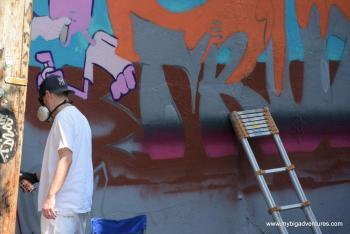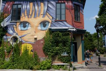 We got up a little later than usual today - I think the warm weather is wearing us out! So we decided to get brunch instead of breakfast. We went to a relatively nearby restaurant, famed for it's brunches - 'Eggspectations'. I had the 'All American' breakfast (a variation on an English breakfast) and Dani had pancakes, with bacon and eggs. From there, we were heading through the city towards la Fontain park and le Mont Royal today. The journey there was also going to take us through an area of interest marked out on our map, so we decided to walk. After breakfast we made our away across town towards the parks. once in the area we took a walk down Deluth Avenue which is much quieter and partially pedestrianised. There were lots of Grafitti murals covering the walls throughout the area, including some huge pieces that covered the sides of large buildings.