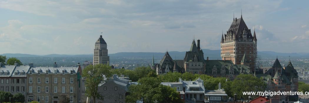 It was another early start this morning for our train to Quebec. We set alarms and were packed up and checking out just after 8 ready for 9.06 train. The train station was only a short walk from the hotel so we arrived in good time, aiming to get some breakfast at Starbucks. Alas, when we arrived Starbucks was closed, so we carried on into the station to see what else was inside. There was a McDonalds but the queue was massive so we decided we would get something on the train again and before long we were queued up and climbing aboard. The journey went pretty quickly, it wasn't so far this time taking just over 3 hours and we arrived in Quebec City just after midday.