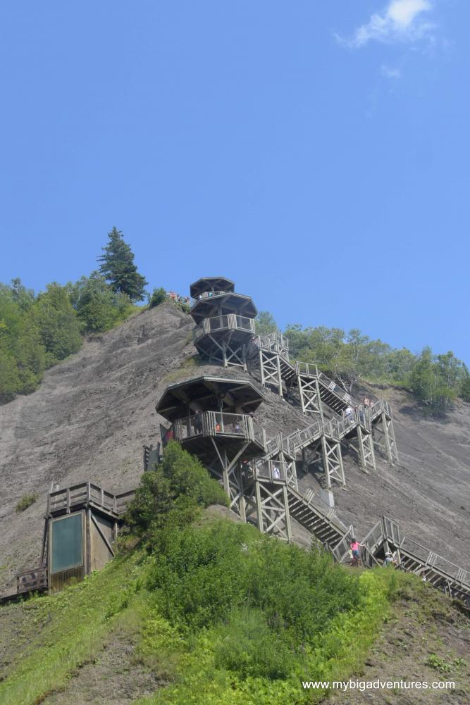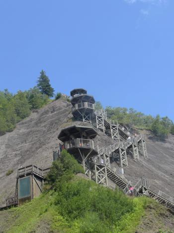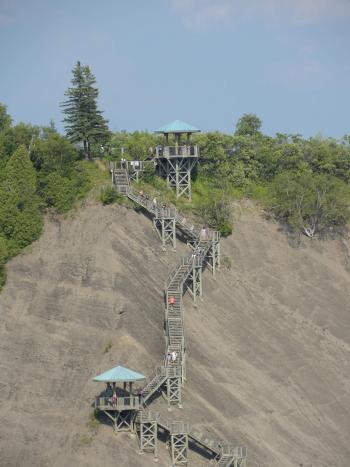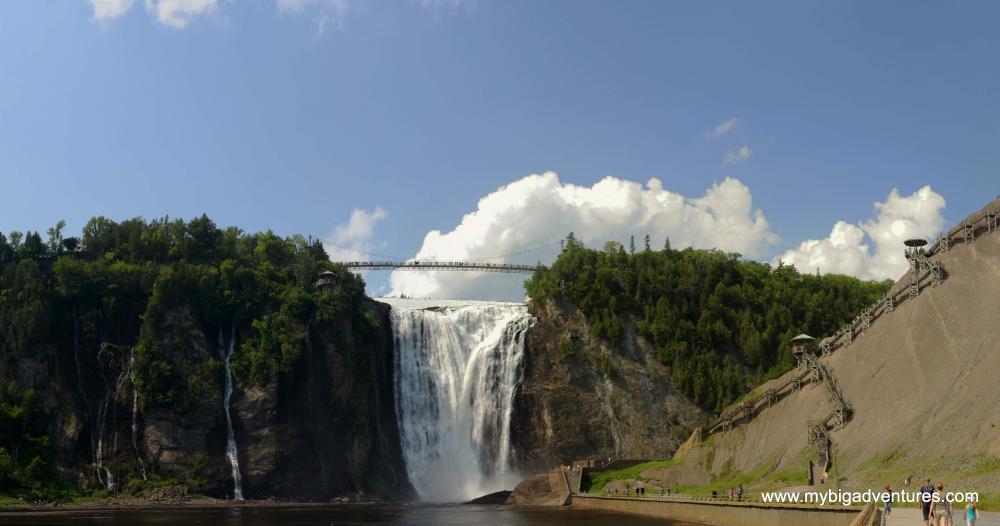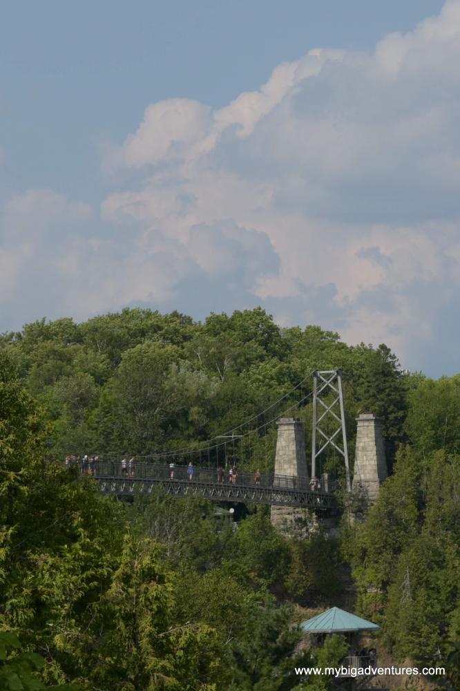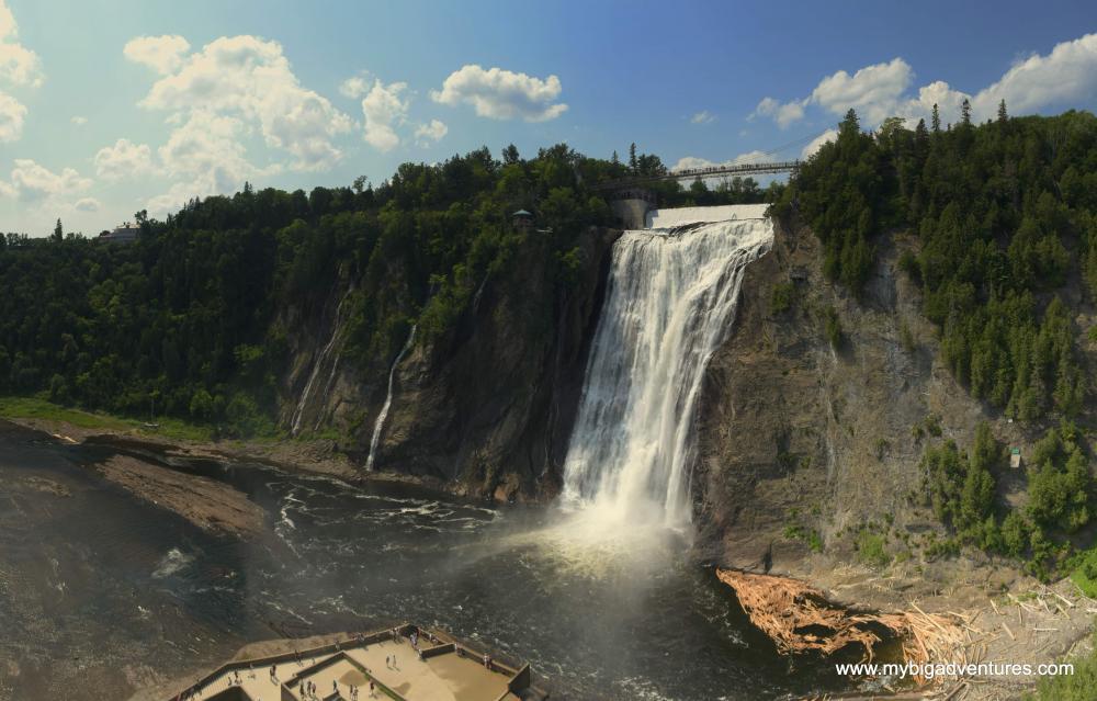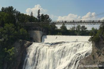 The bus took about 25 minutes to reach it's final stop in Monmorency and so everyone got off. The next bit involved following a man that we thought knew where he was going... we think he did but decided on a slightly different route at the very end. It turns out the falls aren't particularly well signed, but we found them in the end anyway. We had arrived at the top of the falls on a bridge that overlooks them, and after looking for a while we wondered if that was it, but then spotted some steps leading down the side. The wooden steps weave down the side of the falls with lookout platforms dotted on the way down, it kind of looks like an Ewok village. Reaching the bottom, we walked to the edge of the platform right in front of the falls. There was a refreshing mist from all the water that was amazing to stand in given it was another really hot day, so we spent a while there enjoying it and taking a few photos.