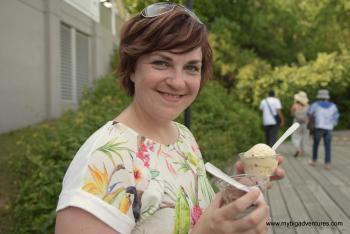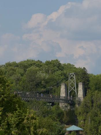 We then followed the path around the pool at the bottom of the falls and across the bridge to a welcome centre, where we sat and had a drink in the cool. We had also spotted that you could catch a cable car from here back to the top, and not relishing the thought of all the steps we bought tickets. The cable car took us back to the top on the other side of the bridge from where we had first started, just outside Manoir Montmorency, an old building that houses receptions rooms and a restaurant. We didn't go in, but we did have an ice-cream from the stall on the boardwalk terrace just around the corner - it was very nice. Just as we were about to cross back over the bridge to head back out, we realised that the bus stop where we had been dropped off, was just up the pathway (we'd walked a long way round as it turned out when we'd arrived). As we headed up the path, we managed to catch our return bus that was just getting ready to leave.