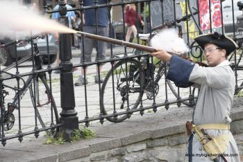 For our last day in Quebec, we had decided to explore the old town a bit more. Although we had already been to the citadelle, we hadn't had much time to look around the rest of town so we once we were up and ready we started heading up hill. We went to Tim Horton's first for some breakfast, geting an egg and bacon muffin with a hash brown - nice. We then made our way to St John gate which we climbed up to take in the view. Whilst up there, we saw some people in period costume below saying something was happening in 10 minutes. They turned out to work for the Artilary museum which is just by the gate, and were there to do a black powder demonstration. We stuck around to watch, taking a few photos of the gun shot whilst there, and then afterwards decided to check out the museum.