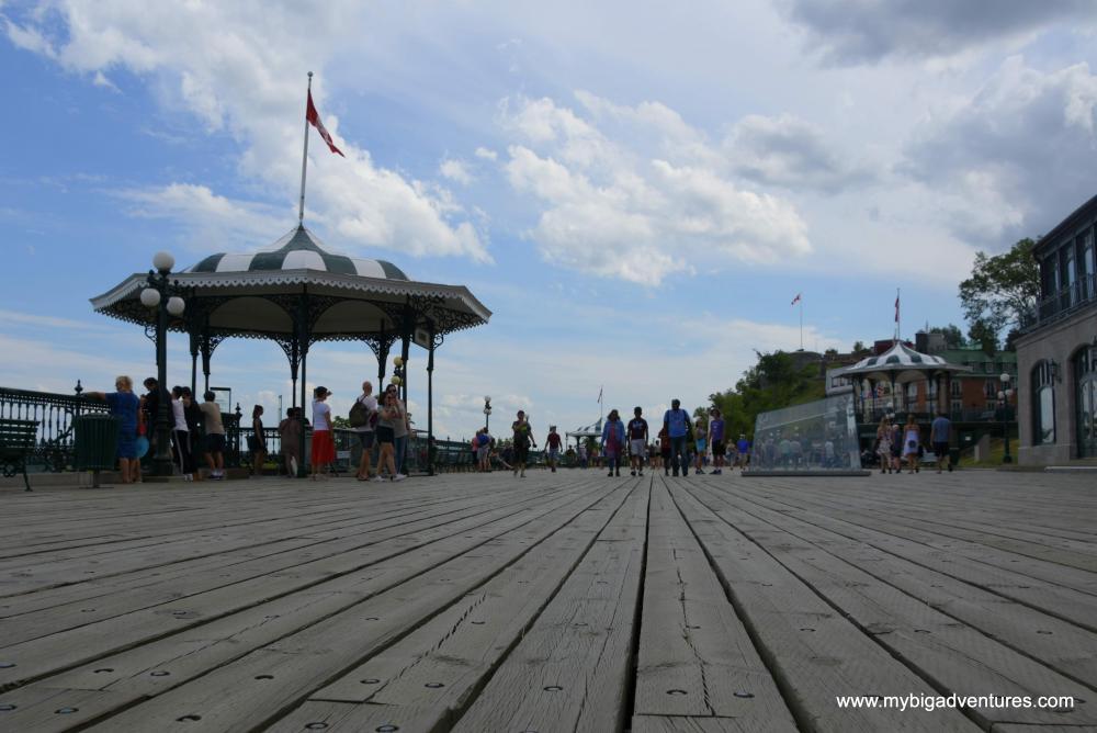 We decided to spend the day exploring a bit more of Quebec today. We were up quite a bit later so grabbed some lunch at Subway which is just around the corner, and then headed into the old town. We started up hill, and found some steps that take you up a bit quicker and after a few more steps we found ourselves on the Terrasse Dufferin which is a wooden boardwalk that wraps around the Château Frontenac which is a grand 19th century hotel. We spent quite a bit of time walking along the boardwalk, stopping on benches intermittently and taking photos of the hotel and view across the Lawrence river. The boardwalk continues quite a way beyond the city walls, eventually becoming steps that lead up to the citadelle at the very top of the hill.