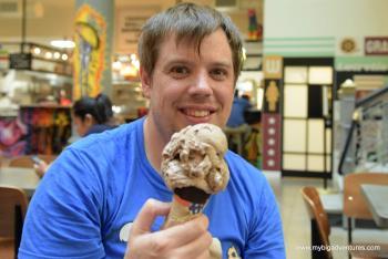 Leaving the dockyard, we headed back towards the Independence hall visitor center to have a look in the shop and stop for a drink. The weather had also picked up a bit from the morning so I took the oppportunity to get some additional photos of the Independence Mall and surrounding area. As we were getting ready to head off, a gentleman saw me taking photos and suggested we look inside the Bourse Building which is to the side of the Independence Mall. As we were close by, we decided to take a look. The building dates back to the end of the 19th century and inside it is an artisian food and shopping market providing a range of dining options. The architecture is amazing with the centre portion of the building open all the way to the skylights at the top, it really was quite an impressive sight. Whilst there we stopped for a snack, Dani had a sticky bun parfait and I had an enourmous chocolate icecream - amazing!