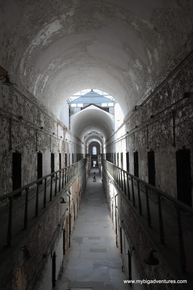 The audio tour covered the most significant features of the prison - it was designed to promote 'penitence' hence being named a 'penitentiary' and it was all about completely isolating the prisoners. They had their own cells, their own yard (open to the elements) and were not released from cells at all. Theoretically, it was to encourage reflection and repentence. Over the years, as the war on crime picked up in the States and masses of people were being incarcerated, they had to extend the prison, so things changed gradually. But there is a lot of the original prison structure to have an idea of what it must have been like, although it is beginning to disintegrate and crumble away. It is really quite eerie in some parts.