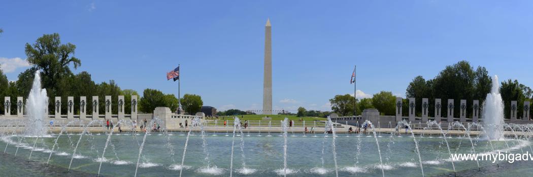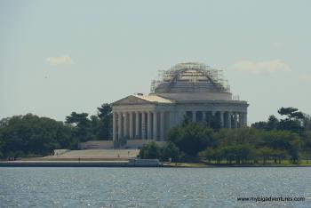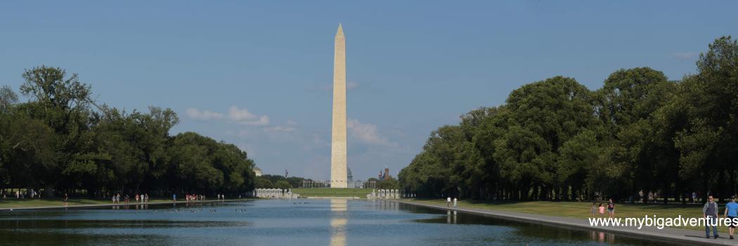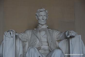 We were feeling pretty tired by the time we came out of the Air and Space museum, and after a bit of to-ing and fro-ing we decided to walk on to the Lincoln Memorial; it was still very warm and sunny, and we thought it was as good a time to go as any. It's just under 2 miles and took about 40 minutes to walk across, stopping a couple of times en route for photos. There is a large reflecting pool between the Washington Monument and the Lincoln Memorial but given the time of day, the memorial was in shadow, however once we'd climbed the steps, we were able to appreciate the monument reflecting brilliantly in the sun. We stayed for a little while, taking some photos and having a rest before heading back towards the National Mall past the WWII memorial. We were careful not to walk next to the water as last time we were here we were bitten a lot and we're only just getting rid of the bites we picked up in Philadelphia.