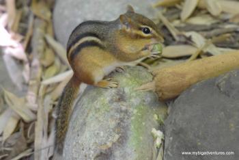 We stopped by the Panda Plaza for some lunch sharing pizza and crisps and then cracked on to see some more of the animals. We went in the Great Ape House to see some of the Apes and then walked on to the big cats. The tigers weren't out unfortunately and the male lion was asleep but the female lions were a bit more alert and moving around so we stood and watched them for a while before moving on. We headed back up the hill through the American trail looking at the sea lion and stopping for an ice-cream. Continuing on, we saw the American Eagle, and the river otters, but that was about it as we werent able to see the bear, the wolf or the beaver. Before heading out, we decided to revisit the bison, Dani had spotted a small yellow bird when we there earlier in the day, but I hadn't managed to get a photo, we didn't really expect to see it again, but suprisingly it was there, I guess they must be nesting nearby. There was a mention on some signs about the zoo within the zoo as birds, insects and other animals that aren't part of the zoo are attracted to the site. We did infact see a range of butterflies, birds and chipmunks on our way around.