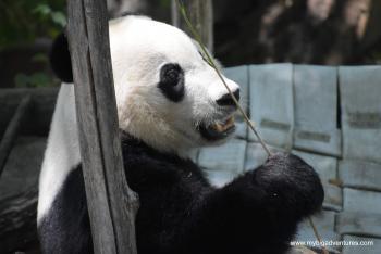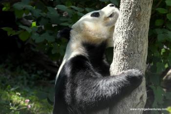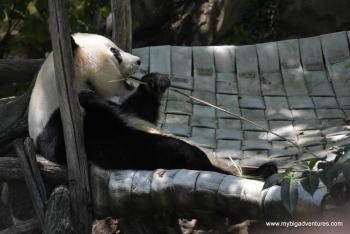 We set alarms to get up a bit earlier, not entirely successful but we were out just after 9. We headed the metro having decided it was probably the quickest way to get to the zoo, although we had seen the free bus also goes that way. We ended up waiting nearly 15 minutes for the train to arrive so it took a bit longer to get there than we had thought. We eventually arrived just before 10 and headed straight down the Asia Trail for the Pandas. Last time we were here, we had been unable to see the giant pandas so this time we wanted to give ourselves the best chance. We were in luck, having checked the live feed screens that show the 'Panda Cam' we saw one of the pandas outside playing with a ring. He was right at the back of the enclosure initially with his back to us, but he did get up and move around a litle bit before heading back inside. We decided to head on and see some of the other animals.