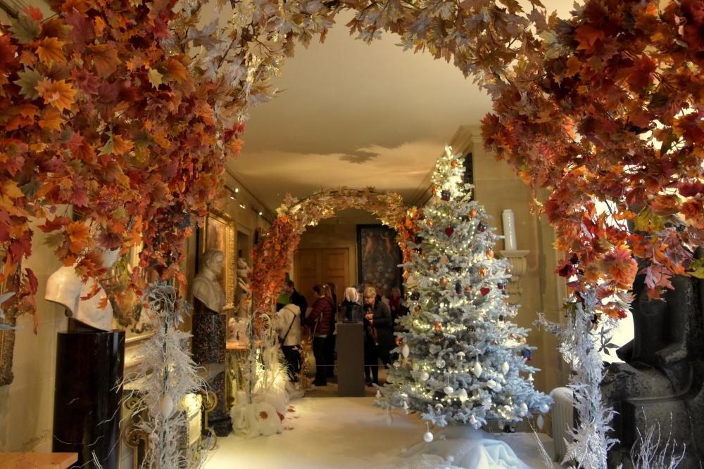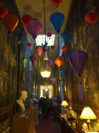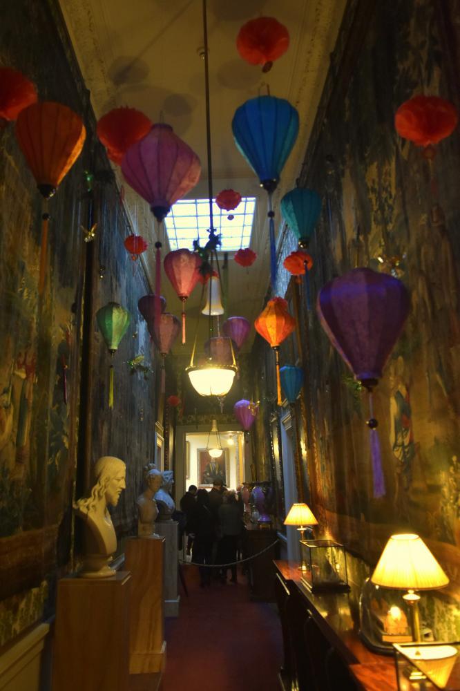 There was a short queue to get in, but the tented area in which we were waiting was decorated up with model planes and hot air balloons, so there was plenty to look at. The theme this year was "around the world in 80 days" and as travelled between each of the rooms in the house, they were decorated to represrnt a different country. The decorations were very impressive and emmersive, with particular highlights including the Moroccan room and the Chinese and Japenese rooms. There were some really pretty decorations which we had hoped to find in the shop, but although they stocked some, they didn't have some of our favourites. We managed to have a bit of a walk around the outside, down to the bottom of the lake to see the house and fountain and through the grotto. The weather initially was nice with some blue sky and sunshine, although as we started to get back towards the house, it did start to rain a little.