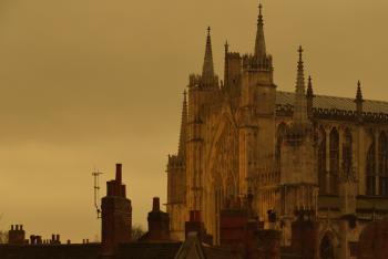 Following the usual Christmas rush, we decided to have a little break, and so, now we find ourselves in a nice flat in York. We're actually right in the thick of it, only a few minutes walk from the town centre and pretty much opposite the Minster. We arrived on Sunday, just at sunset, and had a lovely sunset view of the minster from the lounge windows. Having settled in, we moseyed around York city on Monday, walkign around the city walls and pottering in the shops. We then went in the minster itself, a superb architectural construction - there was a short queue to get tickets and then we had a good wander round, taking lots of photographs and utlimately treating ourselves to a splendid replica of a gargoyle in the shop. It's hilarious!