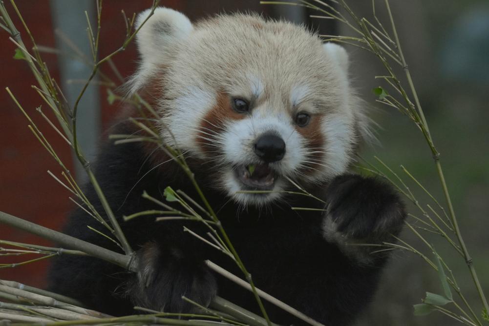 We didn't arrive until the afternoon, so didn't have enough time to cover the whole park so we started to head towards the Rhino enclosure first. On the way we stopped by to see the red pandas. last time we were here in the summer, the red pandas were really difficult to see, high up in the tree, but today they were at the bottom, happily scoffing the vegitatiom, we stayed for a little while taking some photos - I'd only brought the big lens, and the pandas were so close I struggled to fit them all in.