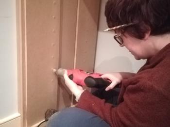 After a spot of bowling, we got back to work on the project. Today seemed a little less productive but involved a lot of trial and error. We started off by cutting the shelf for the top of the units. We were really keen to get a nice finish, but neither wall was exactly straight so in order to get the finish we were looking for, there was a lot of measuring, cutting and remeasuring before it was right.