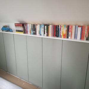The hinges ended up being so much simpler than we had anticipated and by the time we had finished the day, all doors were in place, perfectly aligned and part of the shelf was measured up.
