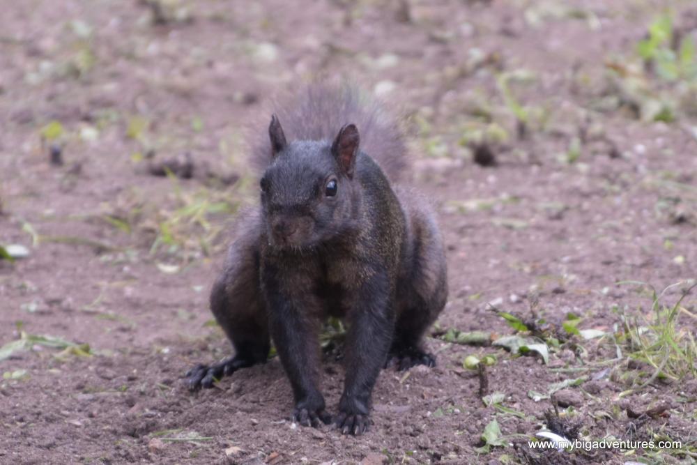 However, that quickly changed as we descended to the lawned area behind the grass. We saw at least 6 squirrels, dashing and scampering and chasing each other through the trees! It was truly awesome! We speculated that they might be siblings, as there was a lot of chattering and bickering going on. And they came quite close, feeding from the stashes of nuts that had been left about. We stood and watched them - even past closing time! It was at least 5.10pm by the time we felt we ought to move on and the property had closed at 5. Ben got lots of photos, although these squirrels were quite a lot livelier than the previous ones.