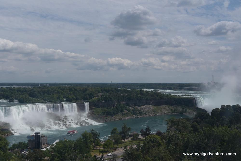 The bus took about 25 minutes to reach it's final stop in Monmorency and so everyone got off. The next bit involved following a man that we thought knew where he was going... we think he did but decided on a slightly different route at the very end. It turns out the falls aren't particularly well signed, but we found them in the end anyway. We had arrived at the top of the falls on a bridge that overlooks them, and after looking for a while we wondered if that was it, but then spotted some steps leading down the side. The wooden steps weave down the side of the falls with lookout platforms dotted on the way down, it kind of looks like an Ewok village. Reaching the bottom, we walked to the edge of the platform right in front of the falls. There was a refreshing mist from all the water that was amazing to stand in given it was another really hot day, so we spent a while there enjoying it and taking a few photos.
