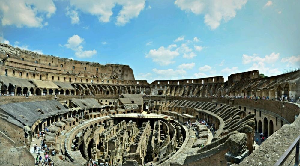We walked on, stopping in San Pietro in Vincoli, a slightly more understated church with frescoed ceiling and dome. Finally a short walk on from here we arrived at the Colosseum. Prebooking the tickets online turned out to be a great idea as the queues were huge. There were a lot of people around trying to sell tours but we headed for the prebooked tickets line and were in pretty quickly. Having visited before, the Colosseum was no less awe inspiring. We spent time admiring the views both into the centre of the amphitheatre and outside to the surrounding landscape. On the second floor we admired the ancient treasures, many of which are over 2000 years old.