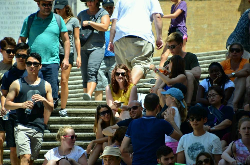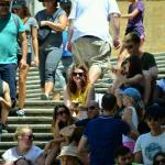 From there we made our way down to the Trevi fountain which unfortunately was drained and clad in scaffolding for restoration work. We moved on relatively quickly to the next stop on our tour, the Spanish steps. We actually approached from the top which gave a nice view down over the steps and the piazza below. It was hot and sunny again today so we joined the small group of people sitting on the steps - in the shade, watching people in the piazza below. It was very busy with lots of people refilling water bottles in the fountain which we later learned had only recently reopened after restoration work.
