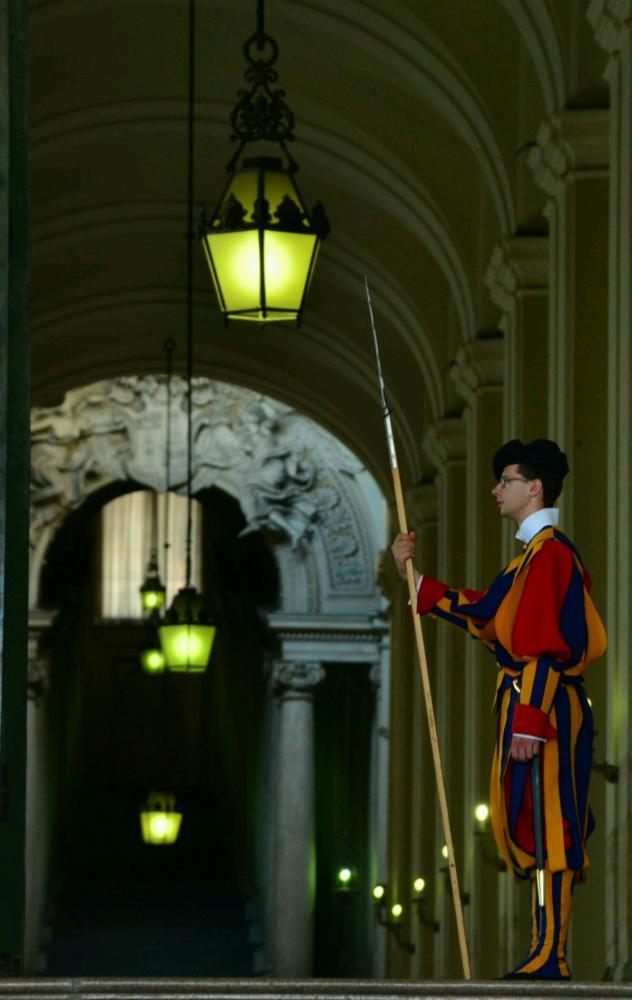 The basilica is as breathtaking as the view above containing works of art by Bernini and Michaelangelo to name a couple. We spent quite a while looking at the sculptures and painted domes, spotting some of the completed Bernini statues for which we saw the practice models in the Vatican yesterday. On exiting the basilica we saw a couple of Swiss guards (private guards to the Vatican) in their colourful uniforms. We took some photos around the piazza and then feeling a bit weary headed back to the hotel.