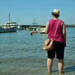 We decided to spend the day in Sorrento today, planning day trips for Capriand Positano for the other days that we're here. So we started with a meander into town, making our way through some of the bustling side streets, taking care not to get mown down by the plethora of mopeds zipping about. Just like in Rome, every crossing is like taking your life into your hands, as you close your eyes, cross your fingers and step out (OK, maybe not eyes closed). At the other end of the shopping area, we headed down a narrow lane leading to, what we thought was, the coastline. And it was! We were looking down onto Marina Grande, and could see across the Bay of Naples to Mount Vesuvius. From there we wandered along, stopping at viewpoints on the way. We arrived at Marina Piccola and could see down to the man made bays in the marina. The water was crystal clear and there were lots of beach huts lining the different sections. Ben had a cheeky icecream while we cooled off under a tree. There is a lift down but we decided to walk down, saving the lift for the more arduous journey back up. From there, we headed to the Porto, to find out about tickets for our planned day trips. Got the necessary info and I had a sandwich.