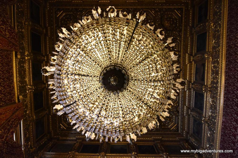 There was a short queue to get in, but the tented area in which we were waiting was decorated up with model planes and hot air balloons, so there was plenty to look at. The theme this year was "around the world in 80 days" and as travelled between each of the rooms in the house, they were decorated to represrnt a different country. The decorations were very impressive and emmersive, with particular highlights including the Moroccan room and the Chinese and Japenese rooms. There were some really pretty decorations which we had hoped to find in the shop, but although they stocked some, they didn't have some of our favourites. We managed to have a bit of a walk around the outside, down to the bottom of the lake to see the house and fountain and through the grotto. The weather initially was nice with some blue sky and sunshine, although as we started to get back towards the house, it did start to rain a little.