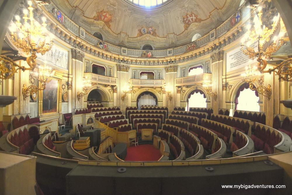 On the walk over we stopped to look in Santa Maria Maggiore which was a very grand church. The outside featured a range of statues, clock tower and two domes. Inside there was a spectacular pannelled ceiling and frescoes within the domes. We sat and cooled down taking a break from the heat (31 degrees) outside surrounded by a number of visiting nuns and monks.