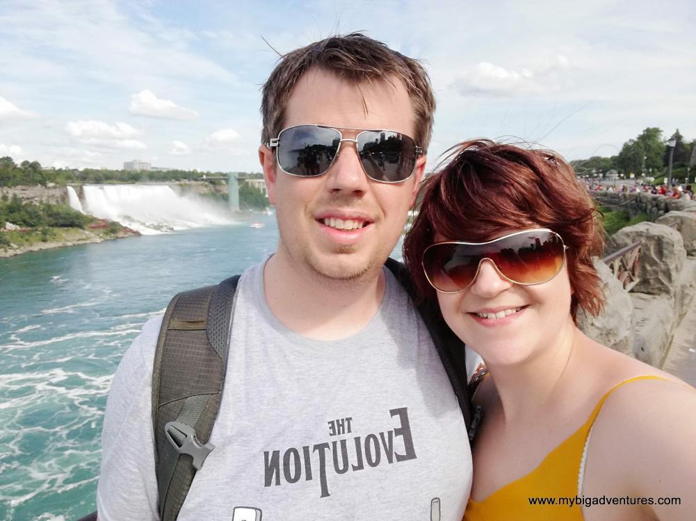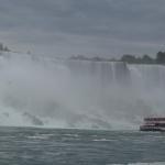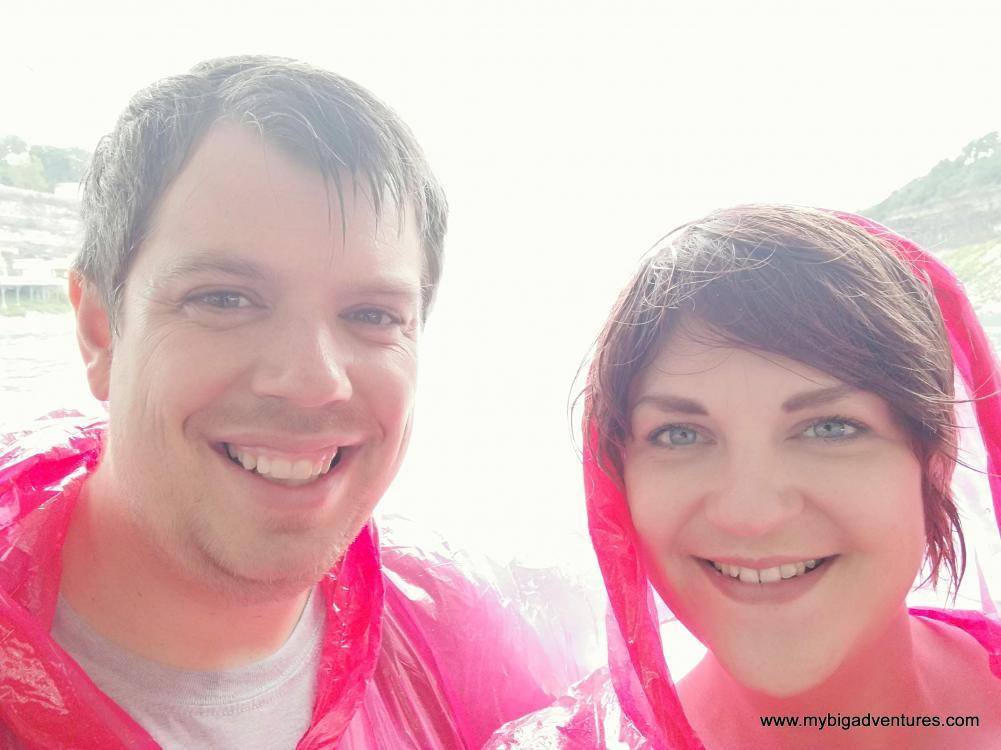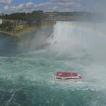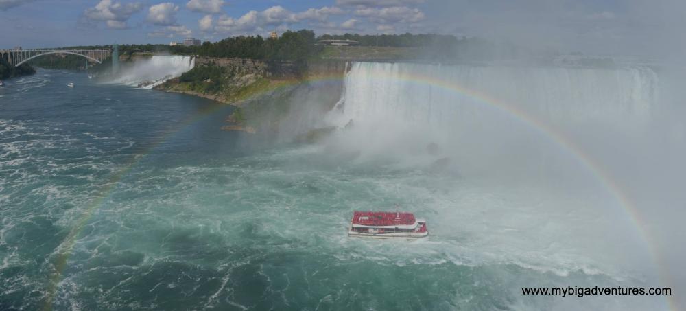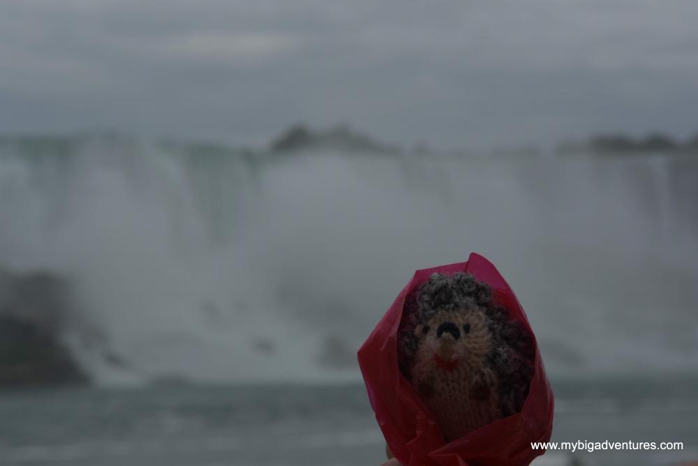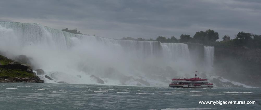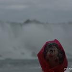We bought megabus tickets online yesterday to go to Niagara falls today. We were booked on the 9.30 coach leaving from the bus terminal which is just a few minutes away from the hotel, so we had plenty of time to go to Starbucks in the morning for some breakfast before setting off. The coach took just under 2 hours to get to the station in Niagara and once there the bus and train stations are almost 3 miles away from the falls themselves. There are buses that ferry people back and firth and a number of taxis lined up outside the station to make the short trip - as it was a cooler day, we decided to make the walk. It took a little over half an hour and we stopped at a shop enroute to buy tickets for the Hornblower ferries that you can catch to ride up to the falls. Buying the tickets meant we skipped the queues and before we knew it, we were on a ferry heading into the mist, with our red ponchos doing some work to keep us dry. The ferry is brilliant and definitely worth getting tickets for, giving you a very different view of the falls to the one you get from the path.