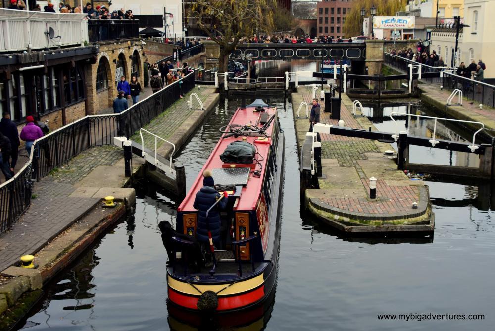 Today, we headed into London town. Having bought a voucher on Groupon for a deal at 'Fatburger' in Camden, we went directly there to have lunch. We hadn't been to Camden for a long while and it was quite busy when we arrived. But it was only a short walk to the restaurant and it was decidedly quieter there, so we settled in for our burgers. The burgers were fairly good, with a good meat-bread ratio and some nice pickle additions. But the chips made it - I had Cajun curly fries and they were really crisp and spicy! Yum! We were full up pretty quickly, so we went for a gander about Camden, wandering into the market to have a mosey about. I don't think we'd been into the actual market before - at least, not for many years - but there were some interesting items on sale and a lively atmosphere. We also stood on the bridge watching a couple navigate the locks on the canal which was quite exciting!