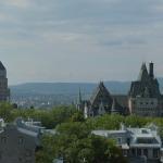 It was another early start this morning for our train to Quebec. We set alarms and were packed up and checking out just after 8 ready for 9.06 train. The train station was only a short walk from the hotel so we arrived in good time, aiming to get some breakfast at Starbucks. Alas, when we arrived Starbucks was closed, so we carried on into the station to see what else was inside. There was a McDonalds but the queue was massive so we decided we would get something on the train again and before long we were queued up and climbing aboard. The journey went pretty quickly, it wasn't so far this time taking just over 3 hours and we arrived in Quebec City just after midday.