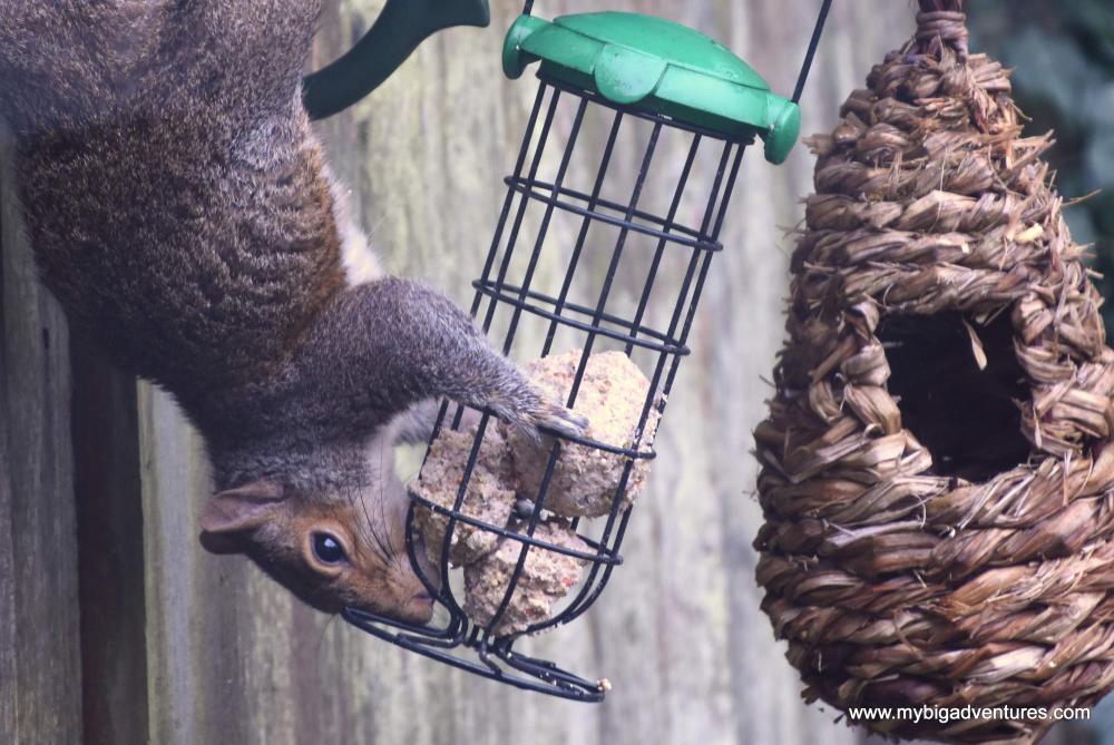 The turkey dinner went down well with everybody on Christmas day, but it wasn't just the family that were tucking in to dinner, in the garden the squirrels and birds have been busy stuffing their little faces with fatballs and seeds. Over the last couple of days the feeders have been very popular with squirrels performing their usual gymnastic tricks to pour seeds into their mouths.