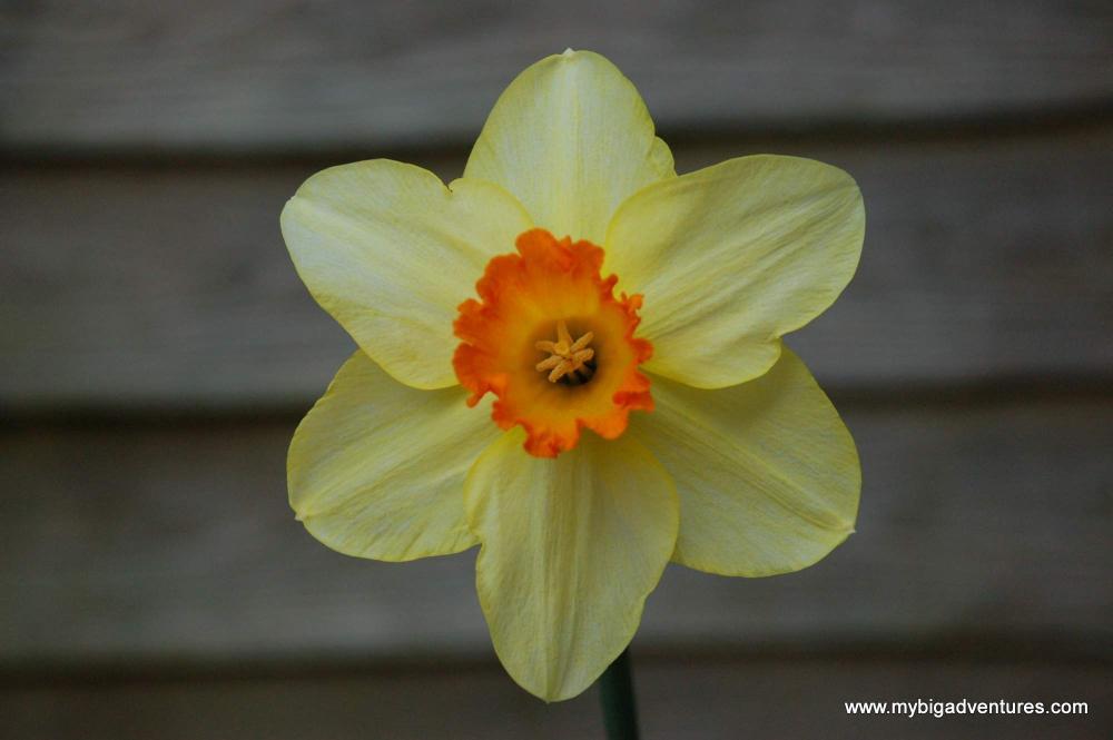 This one was taken a few years ago now, in the back garden at our old house in Leeds. I like the sharp colour of daffodil petals against the dark fence in the background.