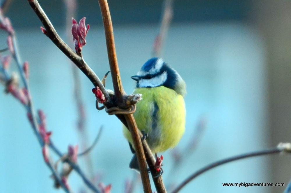 This blue tit was taken from the bedroom window at my mums in Sheffield. I really like the colours and brokeh in the photo. You can just see the leaves starting to unfurl on the branches