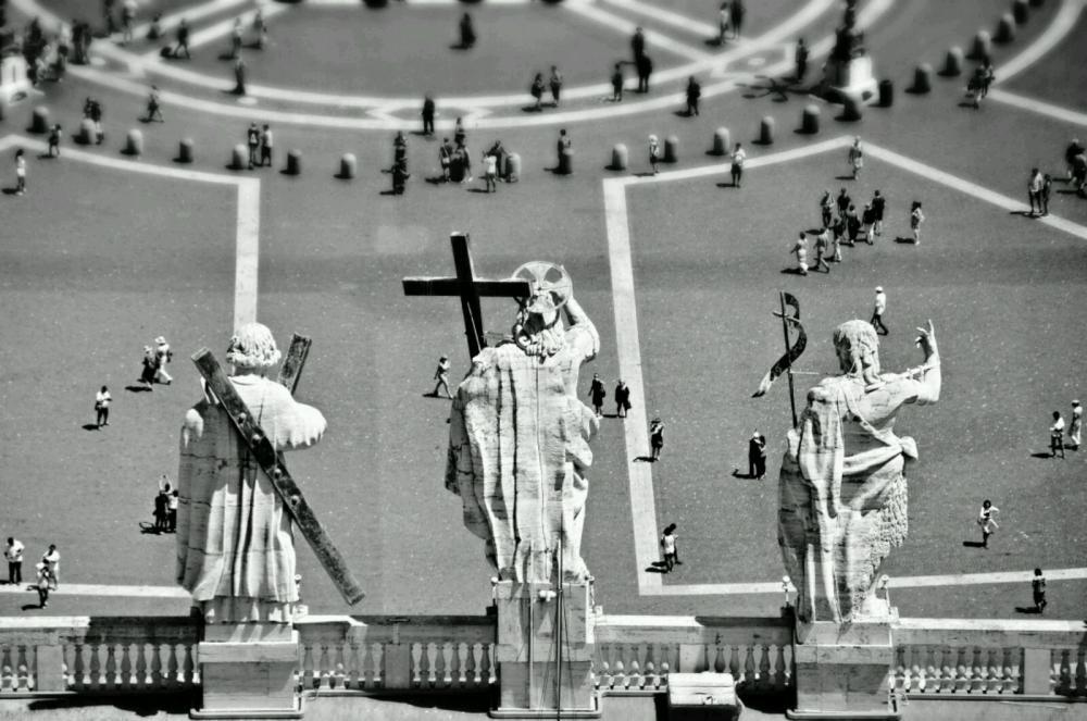 Having spent so long at the Vatican yesterday we didn't manage to visit St Peter's basilica, so we went today instead. Getting there was nice and straightforward taking much the same route as yesterday. We approached the basilica from via de porta angelica in what is basically a straight line from the station entering piazza San Pietro from the side. We immediately joined the long line that was snaking around two thirds of the perimeter of the piazza to enter the basilica. It didn't take long to get in as it was just a queue to get through security and as such was constantly moving, taking us about 30 minutes in total.