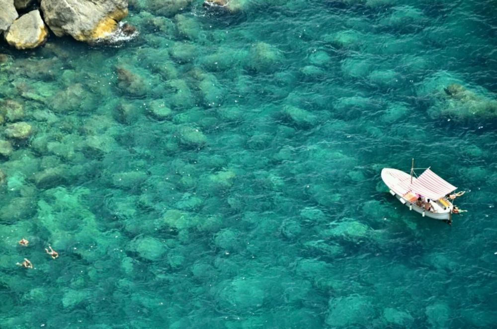 Eventually moving on we decided to grab some lunch stopping at Hotel Flora. It was very tranquil despite being just off a well trodden passage. There were only a few other people there that seemed to be residents if the hotel. We had a very nice lunch sitting on the terrace overlooking the sea. Do look out for it if you visit! After a long lunch we continued to wander in and out of the shops and meander around the streets until about 3.30 when beginning to feel tired we headed back down on the fenicular train and across the dock to get the boat back to Sorrento. The boat back was much quieter again at the top this time at the back right to get the best views on the way back. Arriving back in Sorrento we headed back to the room to cool down.