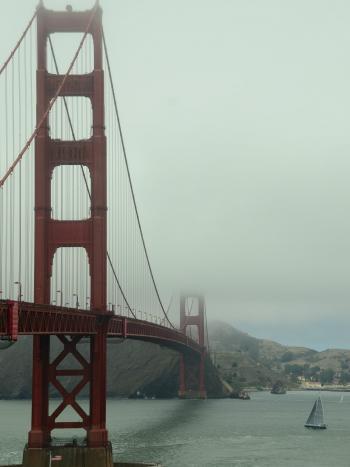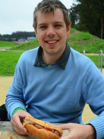 We cycled around towards the Golden Gate Bridge, stopping for photos a few times. We used the gorilla pod to take one of us and the bike, and a lady offered to take a photo when we got to a pier just before the bridge. Whilst at the pier, we had a little sit and a hot dog from ‘Let’s Be Frank’, a hot dog stand - it was very tasty. We then began the cycling part of the journey again.
