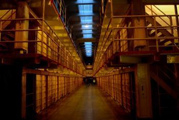 The Rock’ itself is huge and home to lots of different birds, some of them rare. We had a bit of a tour up to the prison, with a guide, then it was an audio guide inside. Had a good look around all the cells in the different sections, taking a few pictures of Brugges (on tour) - he did a lot of posing just inside the cell bars. It is all starting to decay, but gives a good indication of how grim it was. I was too cold to stay outside long, but Ben took lots of pictures of the Bay in the twilight. It looked really good, with the fog looming over. We had to rush a bit to get the return ferry, but made it and headed back to shore.