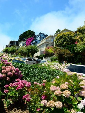 We headed out from Macy’s to start our walking tour. First, it took us through Chinatown. It was really colourful; there were people playing traditional Chinese music and at one point, a van pulled up full of watermelons, which was quickly surrounded by lots of people. Next, we headed up to Lombard Street (the most crooked street in San Francisco). I think it’s because the incline is much too steep to be straight, so it wiggles all over the place. It looked really colourful, with big hydrangea plants planted all the way up. There were lots of people taking photos - including the people in the cars, driving down! There was also an amazingly vivid pink bougainvillea growing up a striking blue house, which was stunning.